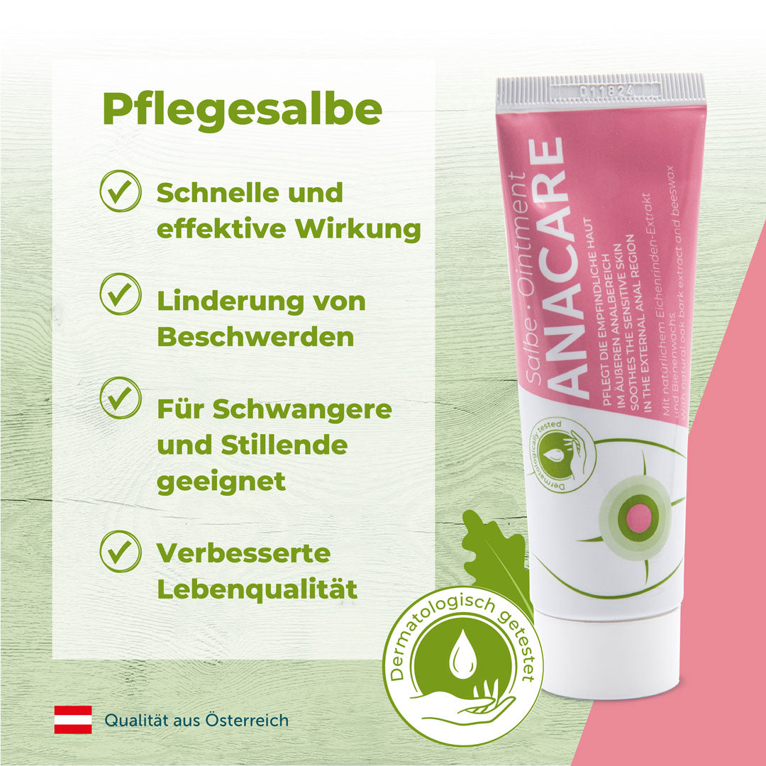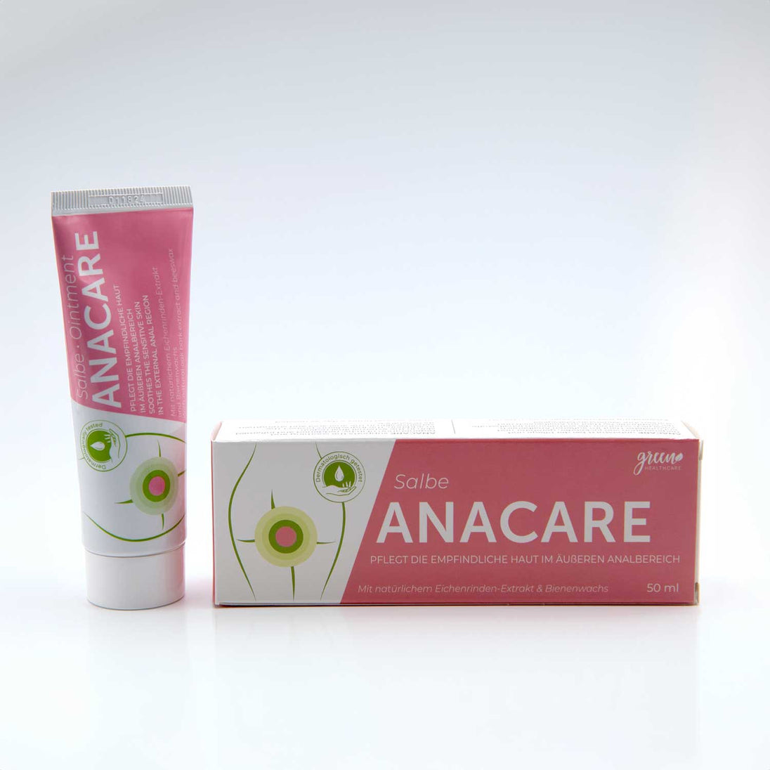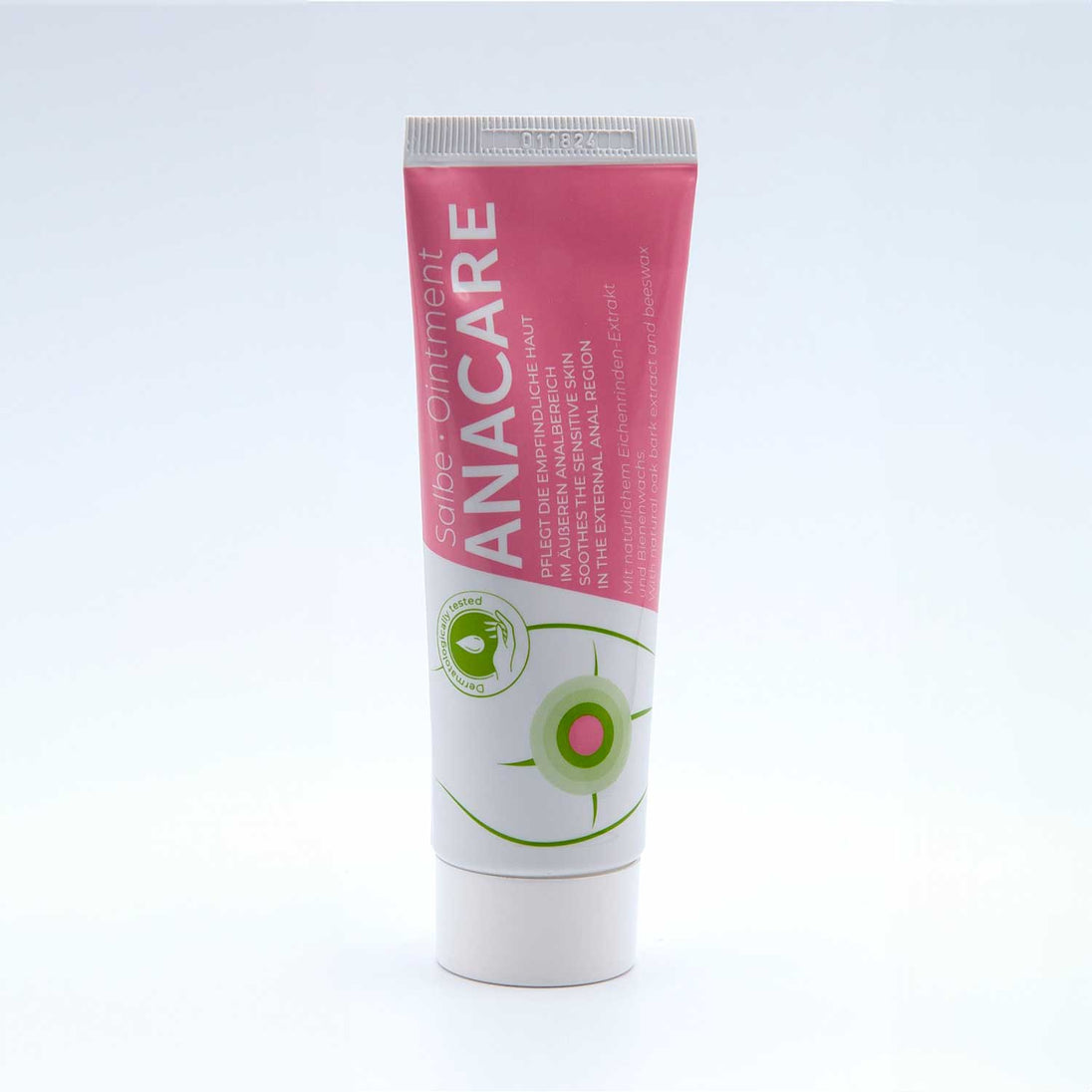 Product information: ANACARE care ointment for complaints in the external anal area cares for and soothes itchy, reddened and inflamed skin. It also protects the sensitive skin in the anal area and strengthens its resistance.